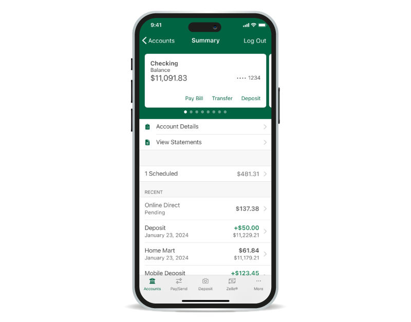 1 U.S. checking or savings account required to use Zelle. Transactions between enrolled consumers typically occur in minutes. Zelle® and the Zelle® related marks are wholly owned by Early Warning Services, LLC and are used herein under license.