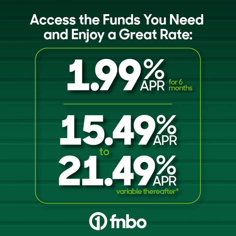 After the initial 6-month fixed rate, the APR is variable based on The Wall Street Journal prime rate (“WSP”) plus a margin. The amount of the margin depends on type of relationship, and credit qualifications. As of November 3, 2025, variable rates range from 15.49% to 21.49% APR. Introductory offers may not be combined with any other relationship discounts.